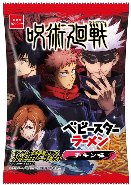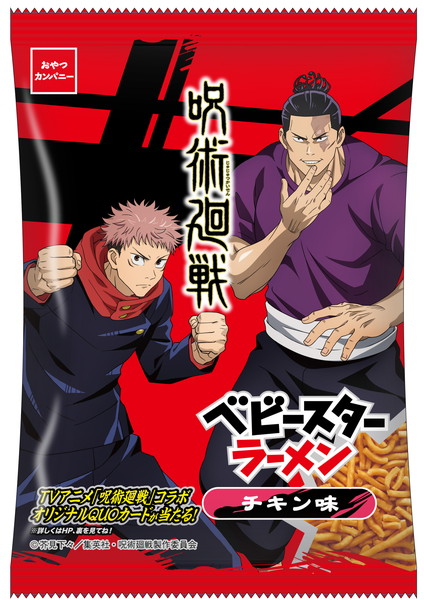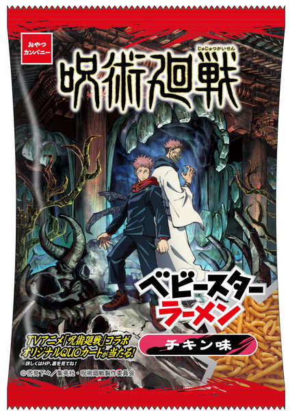 TVアニメ『呪術廻戦』とベビースターのコラボレーション商品「呪術廻戦×ベビースターラーメン(チキン味)」が、5月17日(月)より全国にて発売になることがわかった。