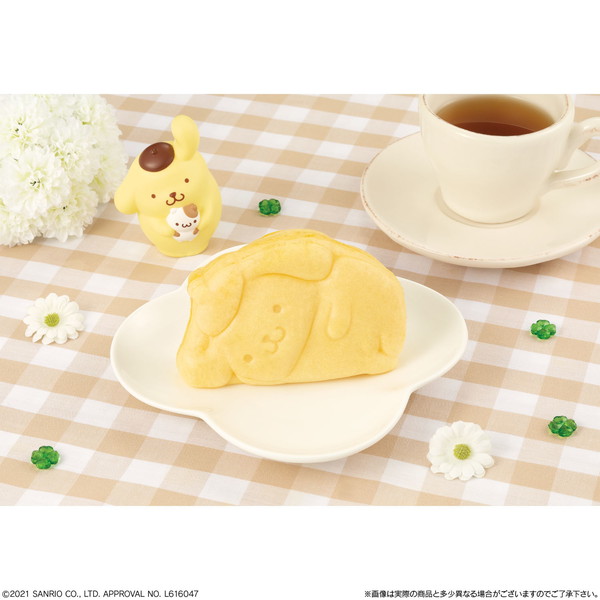 ポムポムプリンのかわいい寝姿を再現したスイーツ「もちもちポムポムプリン焼き」。弾力のあるもちもちの生地の中には、ポムポムプリンの好物であるプリンをイメージした、プリン味のクリームが入っている。