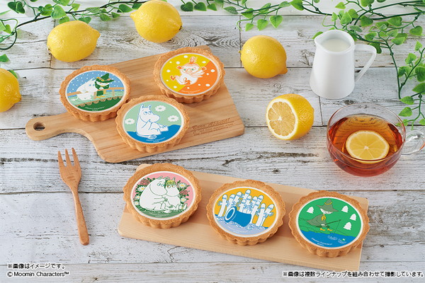 本商品は、ムーミントロールやそのなかまたちがおしゃれにデザインされたタルト。ムーミントロールやスノークのおじょうさん、ちびのミイ、ニョロニョロ、スナフキンの可愛らしいイラストのフィルムがのっており、デザインは全6種。