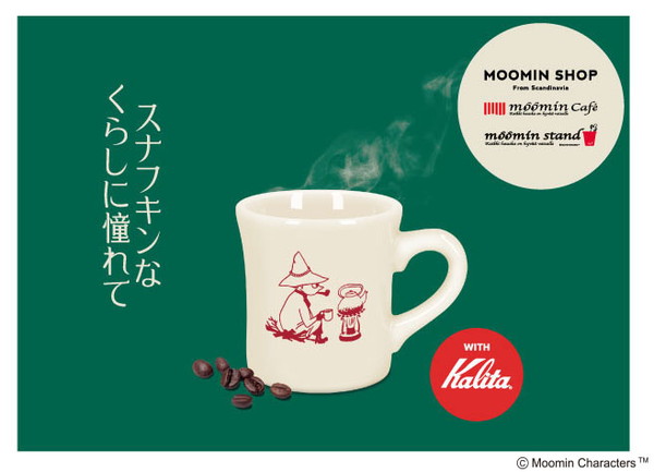 ムーミンカフェではスナフキンが森で過ごしているようなイメージの、キャンプをモチーフにしたメニューやコーヒーデザートが登場。ムーミンショップではハーモニカ型のチャームやポロシャツ、ハットなどのアパレルアイテムをラインアップ。ムーミンカフェとムーミンショップでは老舗コーヒー器具メーカー「カリタ」とコラボレーションしたコーヒーミルやドリッパー、ヴィンテージマグやメジャースプーンなどのコーヒーアイテムが販売される。