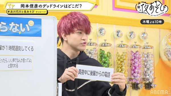 ABEMAにて配信中の『声優と夜あそび』が、2021年4月より4年目に突入。2021年5月13日(木)の『声優と夜あそび 木【浪川大輔×石川界人】#5』では、ゲストとして、岡本信彦さんが登場。岡本さんの本質を見抜く、「岡本信彦のデッドラインはどこだ」「岡本石川 サイコパス声優はどっちだ」などの特別企画を実施しました。