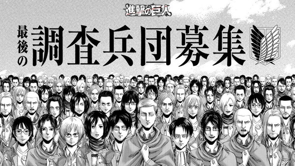 週刊少年マガジン編集部は『進撃の巨人』の12年にわたる物語が完結したことを記念して、本日より、調査兵団に入団し『進撃の巨人』への想いを捧げることができる「最後の調査兵団募集」を開。そして、調査兵団のジャケットを身に着けた書店員が全国のアニメイト・TSUTAYAチェーンに現れると発表した。