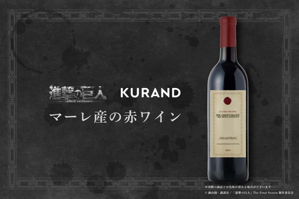 お酒のオンラインストア「KURAND(クランド)」にて、大人気アニメ『進撃の巨人 The Final Season』の作中に登場する「赤ワイン」を再現した「マーレ産の赤ワイン」が、2021年6月11日(金)17:00より数量限定で予約販売を開始する。