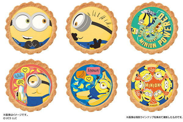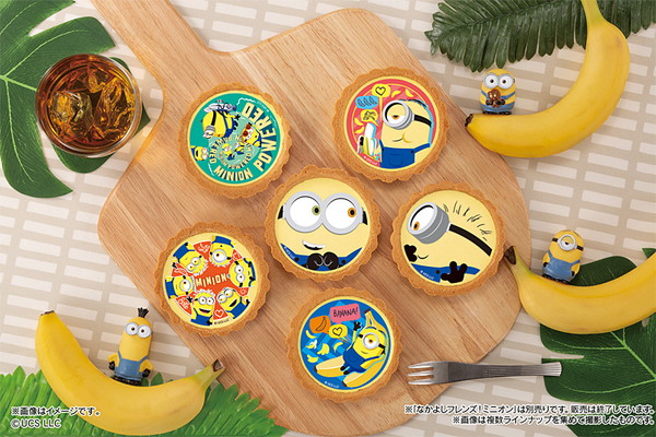 さくさくな食感のタルト生地にバナナ風味のムースを絞り、ミニオンたちがプリントされたフィルムをのせた、見て楽しい、食べておいしいタルト。ムースはミニオンのモチーフカラーである黄色を再現しており、上には個性豊かで愛嬌たっぷりのミニオンたちがデザインされたフィルムが乗っている。