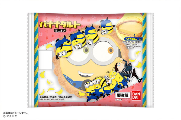 ミニオンのチルドデザート「バナナタルト ミニオン」が、2021年7月13日(火)より全国のローソン(ナチュラルローソン、ローソンストア100を除く)のチルドデザートコーナーにて販売される。