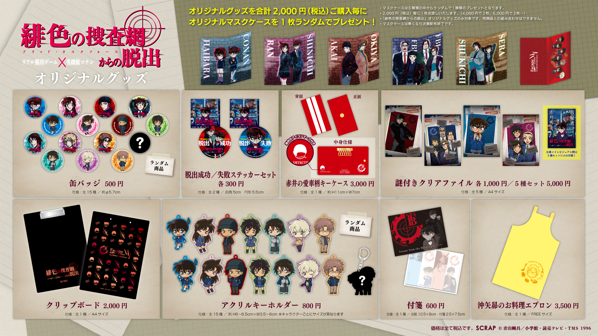 ※イベント開催会場にて「緋色の捜査網からの脱出」イベントオリジナルグッズを2,000円(税込)お買い上げ毎に、ノベルティ(マスクケース/全6種)をランダムにて1点プレゼントいたします。ノベルティはなくなり次第配布終了となります。