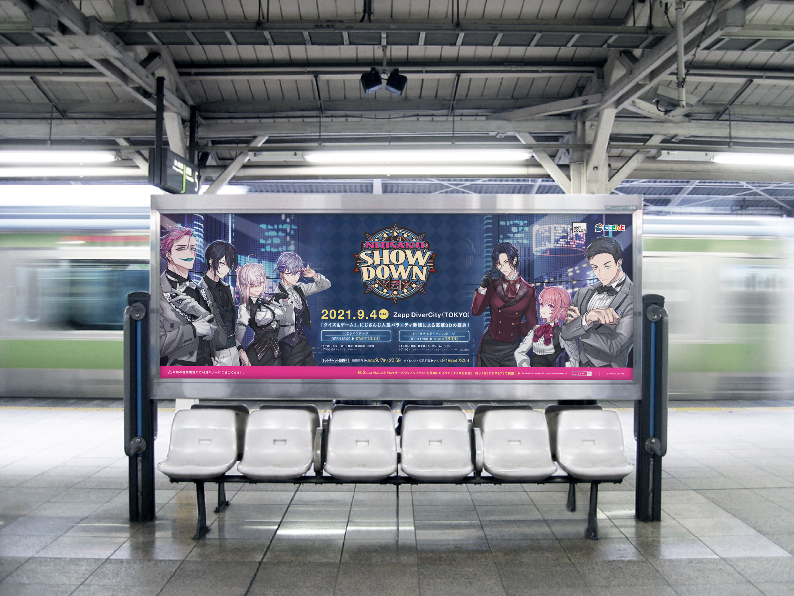 ANYCOLOR株式会社が運営するVTuber/バーチャルライバーグループ「にじさんじ」は、2021年9月1日より、JR山手線を中心とした首都圏主要31駅32ヶ所に、2021年9月4日開催する3Dイベント「NIJISANJI SHOW DOWN」と「にじさんじオフィシャルストア」の独立型ベンチ広告を掲出開始いたしました。本広告は2021年9月15日まで掲出予定となります。