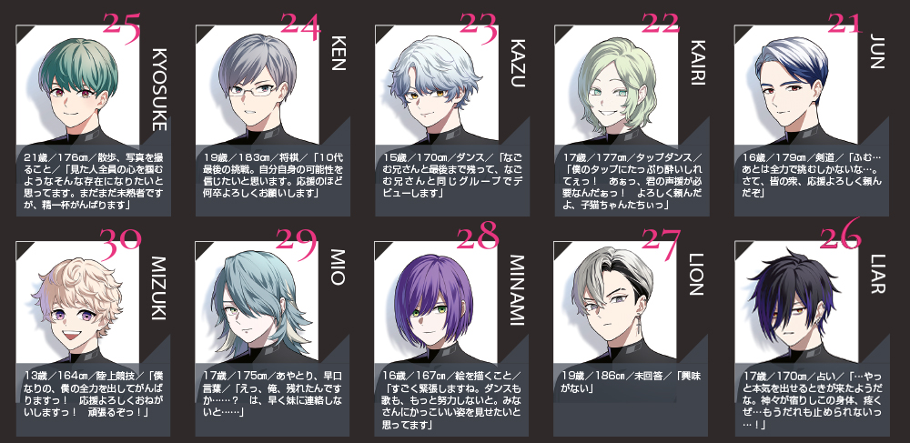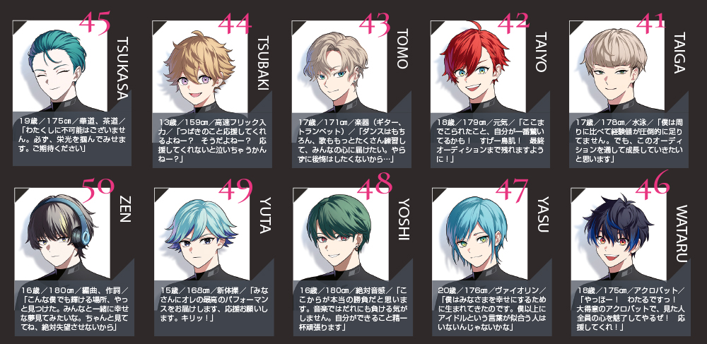 芸能プロダクション「REISEN(ライゼン)」による超大型アイドルグループ発掘オーディション『VS AMBIVALENZ』(バーサスアンビバレンツ)が開催されている。ここでは、7人組ボーイズグループでのデビューを目指す13万人以上のなかから第一次審査に通過した50名にPASH!が独占インタビュー!