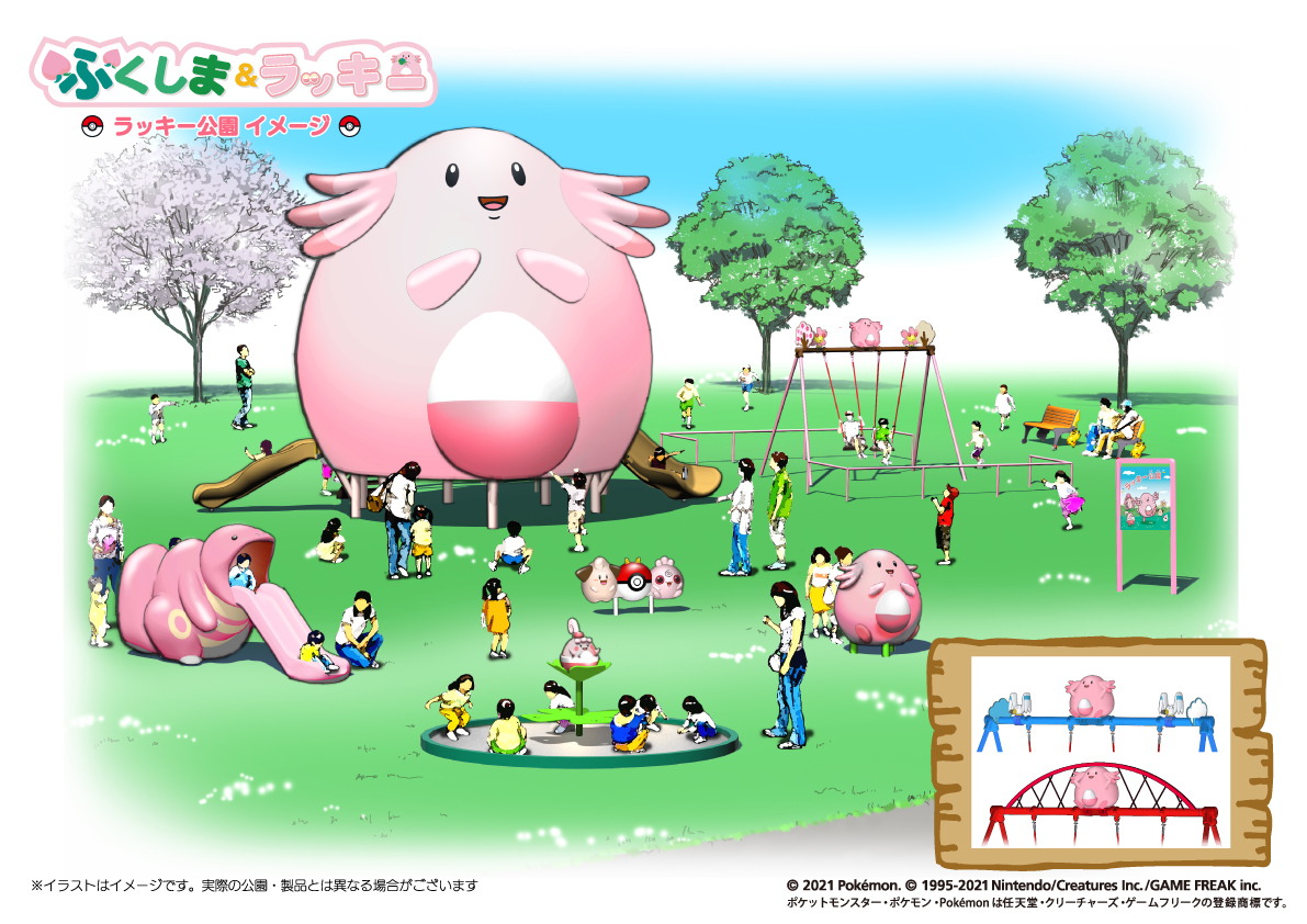 株式会社ポケモンは、2019年2月より連携協定を締結している福島県の活性化を目的に、福島県内4市町村に、「ふくしま応援ポケモン」のラッキーをメインにデザインされた公園遊具を寄贈いたします。寄贈後、遊具は各市町村により設置され、「ラッキー公園」が開園いたします。