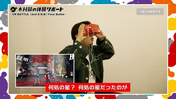 本日公開された映像では、スタッフが木村の楽屋に突撃訪問する形でスタート。突然の訪問に最初は戸惑う様子の木村さんだが、スタッフからVR viewerを受け取ると早速VR BATTLEの視聴を開始。