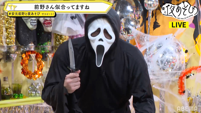 本放送では“ハロウィンスペシャルウィーク”に合わせ、安元さんが映画『スクリーム』のゴーストフェイス、前野さんが、映画『チャイルド・プレイ』のチャッキー姿で登場。