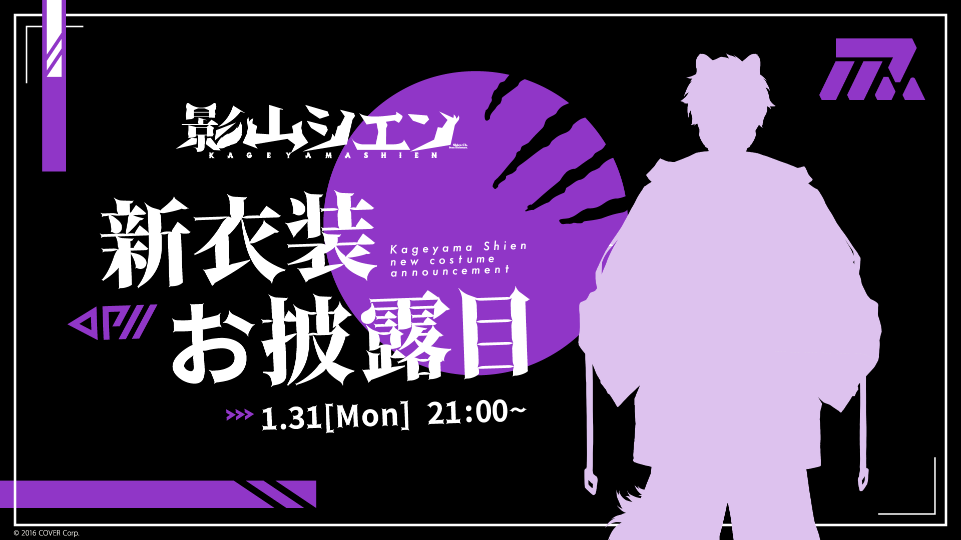 カバー株式会社は、当社が運営する“ホロライブプロダクション”傘下の男性VTuberグループ“ホロスターズ”において、所属VTuber“影山シエン”の新衣装お披露目配信を、2022年1月31日21:00より本人のYouTubeチャンネルにて実施することをお知らせいたします。