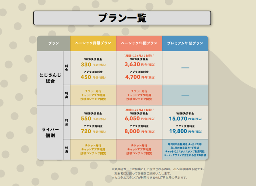 プレミアム年間プランに加入していただいた会員限定で、ライバーが執筆したA4サイズ両面の限定会報を発送いたします。3月号となるファンクラブ会報は、2022年3月より発送を予定しております。3月号会報発送先の住所登録期間は、2月末までとなりますので、ご注意ください。