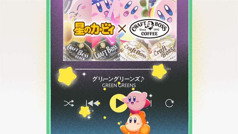 また、3月8日よりスタートした“SONG&CRAFTBOSS”キャンペーンの一環として、Spotifyでは期間限定でWEB CM使用楽曲のフルバージョンを配信。カービィにインスパイアされた、独自のプレイリストもお聴きいただけます。