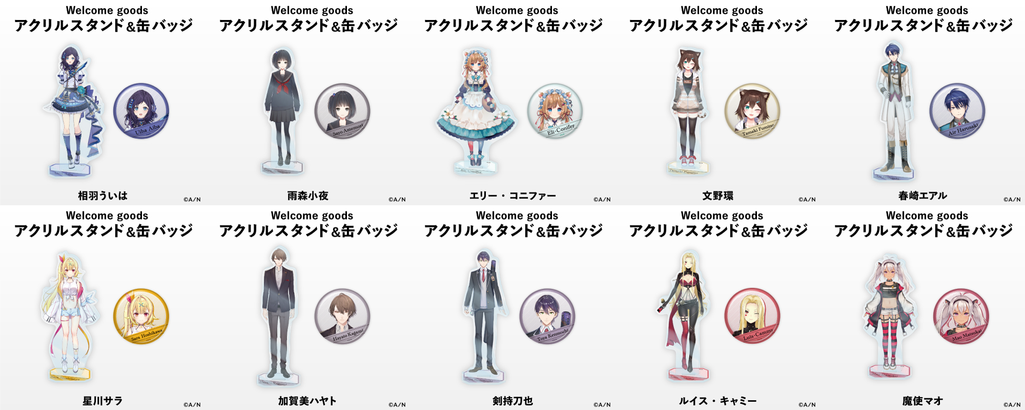 “Welcome Goods”は、アクリルスタンドと缶バッジの2種類展開。“Welcome Voice”は、自己紹介から始まる全3トラック構成の内容となっております。“Welcome Goods&Voice”は、まだにじさんじを知ってまもない方、興味を持っている方に特におすすめな商品です。