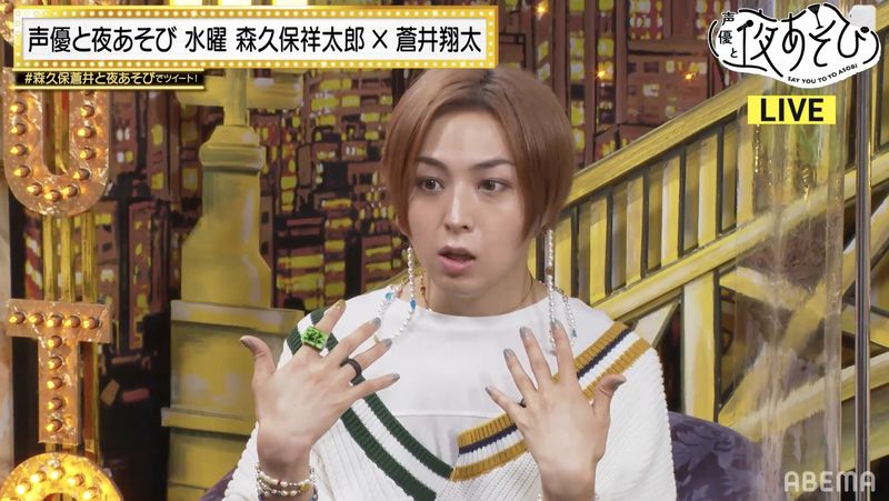 新しい未来のテレビ「ABEMA(アベマ)」は、「アニメLIVEチャンネル」において、2021年4月20日22:00~23:30に、『声優と夜あそび 水【森久保祥太郎×蒼井翔太】#2』を放送しました。