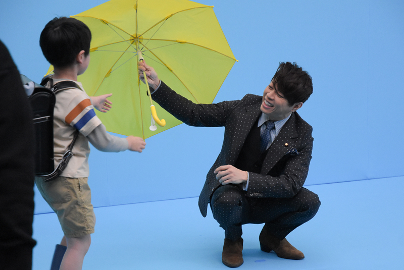 ある雨の日に傘をくれた小学生に、西川貴教さんが恩返し訪問するストーリーです。恩返しの品として『消臭力 DEOX 玄関用』を持参し、玄関の靴のニオイをブロックする〔レセプターブロック消臭〕機能について、全力のパントマイムで商品説明を披露していただきました。西川さんの表現力をお借りして、今までにない新しい形の商品説明CMを作りました。