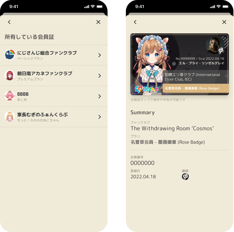 ライバー個別会員証のデザインに関して、追って公開させていただきますのでお楽しみにお待ちください。