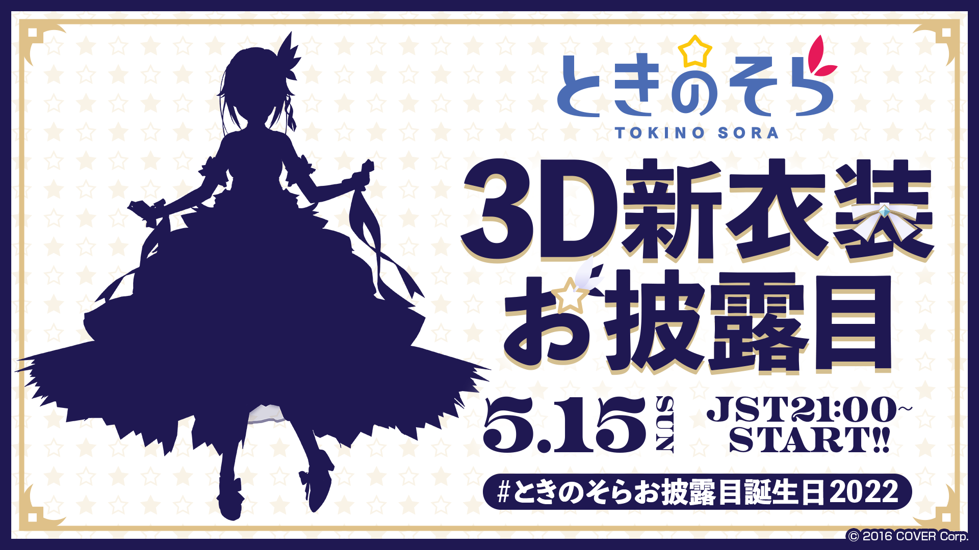 カバーは、当社が運営する“ホロライブプロダクション”傘下の女性VTuberグループ“ホロライブ”において、所属VTuber“ときのそら”の3D新衣装お披露目配信を、2022年5月15日21:00より、本人のYouTubeチャンネルにて実施することをお知らせいたします。