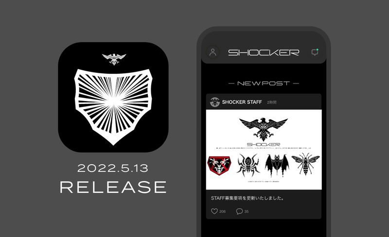 ダウンロードした方はSHOCKERの協力者として、秘密結社SHOCKERの最新情報や構成員によるアプリだけの限定コンテンツを楽しむことができます。アプリは無料アプリとなり、各端末のアプリストアからダウンロードできます。