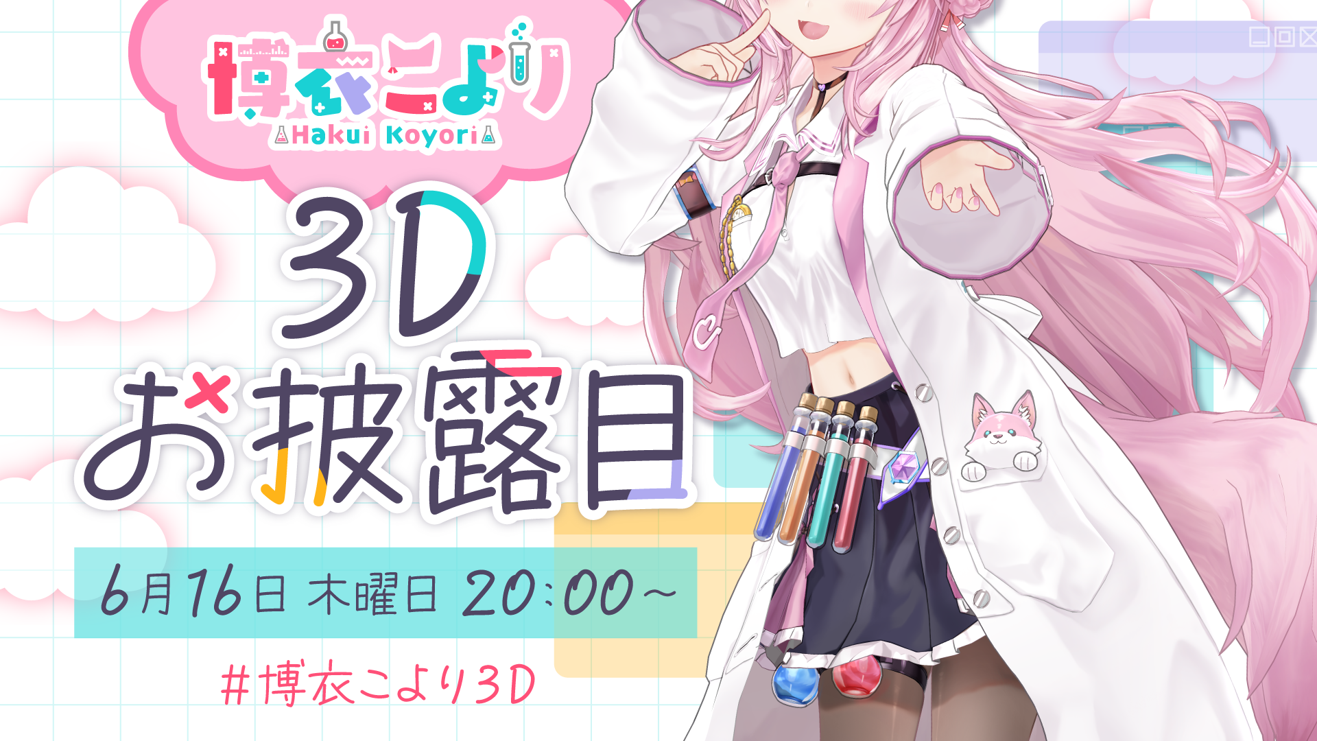 本3Dお披露目配信では、博衣こよりが3Dボディを惜しみなく活かして、視聴者の皆様に素敵なパフォーマンスをお届けいたします。この機会にぜひ、ご視聴・ご声援くださいませ。