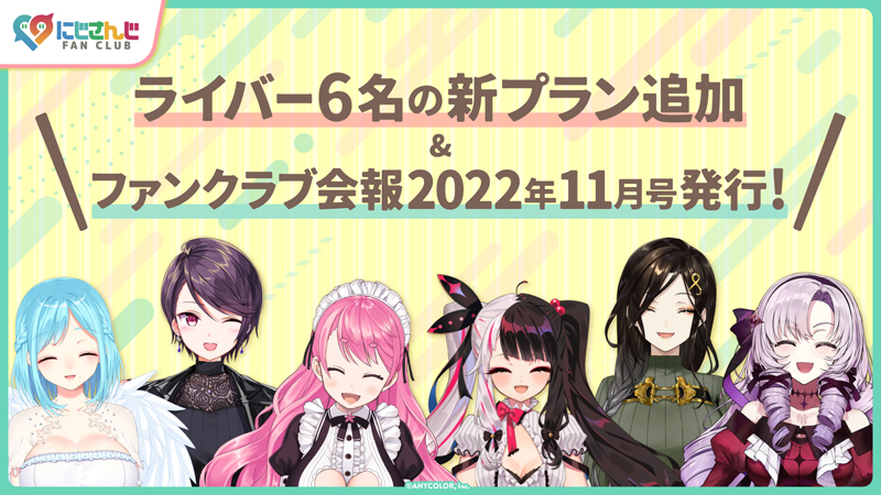 ライバー6名の新プラン追加&ファンクラブ会報11月号発行