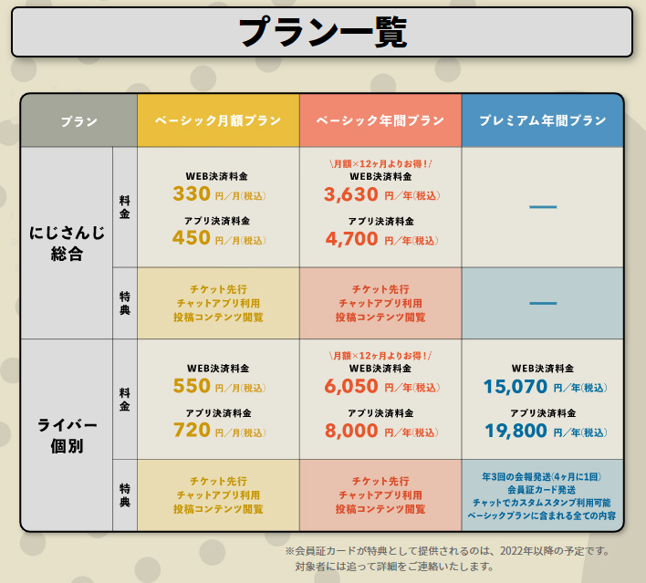 にじさんじ公式ファンクラブ概要