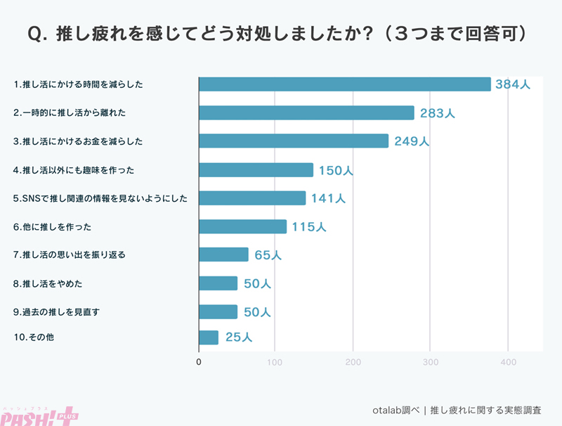 そのため、“推し活に掛ける時間を減らした”や“一時的に推し活から離れた”というような対処を行うことが、推し疲れの軽減に繋がったと考えられる。