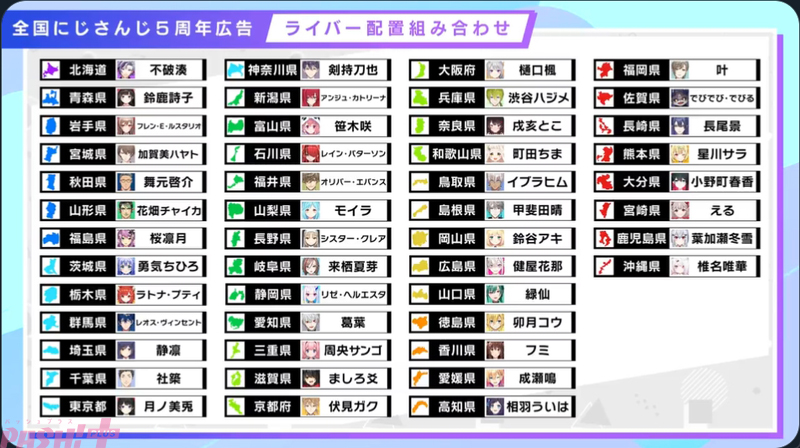にじさんじの公式Twitterにて、“全国にじさんじ5周年広告”に関する情報が発表されました。全国47都道府県ににじさんじライバーの広告が登場するとのこと。本記事では、ライバーの配置組み合わせをリストアップ!
