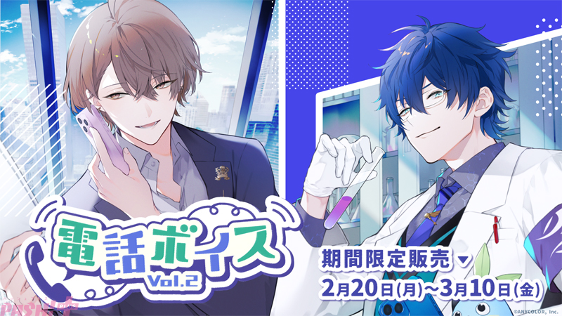 販売期間は2月20日18:00~3月10日23:59で、キービジュアルセット、キービジュアルに登場する2名のライバーボイスには、もれなくPC&スマートフォン用壁紙が付属します。ぜひボイスとあわせてお楽しみください。