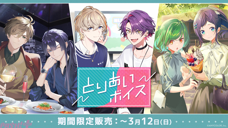 ANYCOLORが運営するVTuber/バーチャルライバーグループ“にじさんじ”は、にじさんじボイスドラマ“とりあいボイス”を2023年2月27日18:00より、にじさんじオフィシャルストアにて販売開始いたします。