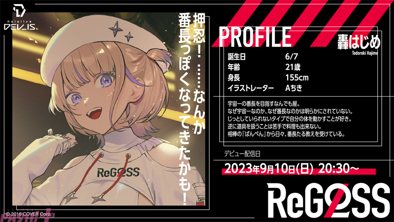 ホロライブプロダクション傘下の新たなグループとして“hololive DEV_IS”が結成。火威青、音乃瀬奏、一条莉々華、儒烏風亭らでん、轟はじめで構成された5人組VTuberガールズグループ“ReGLOSS”はhololive DEV_ISに所属するVTuberとして活動をスタートします。