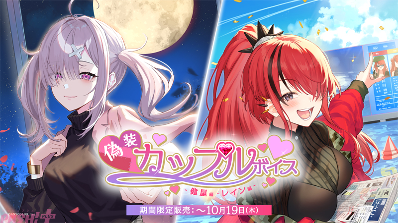 わけあってカップルのふりをすることになったライバーとアナタ。偽装のカップルは真実になるのか……? 健屋花那、セラフ・ダズルガーデン、不破湊、レイン・パターソンによる“偽装カップルボイス”は、にじさんじオフィシャルストアにて2023年9月19日18:00~2023年10月19日23:59の期間限定で販売されます。