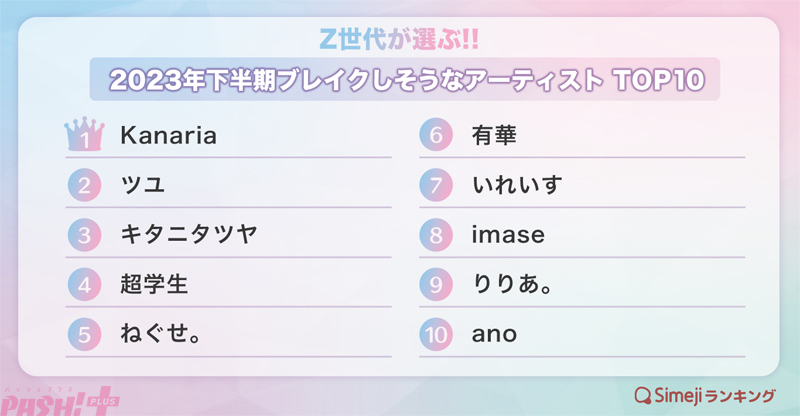 Kanariaに超学生、いれいすがランクイン! Z世代が選ぶ「2023年下半期ブレイクしそうなアーティストTOP10」が発表