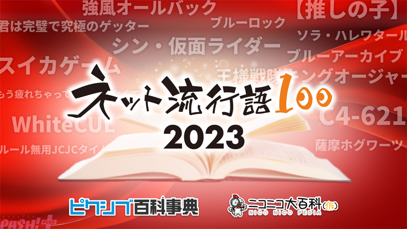 ドワンゴとピクシブは、各社が運営するサービス「ニコニコ大百科」と「ピクシブ百科事典」の各単語ページにおける2023年のアクセス数にもとづき、今年ネットで最も流行った言葉を決定する共同企画「ネット流行語 100」を開催します。
