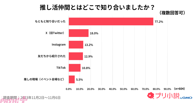 SNSの中でも特に「X(旧Twitter)」(18.0%)で推し活仲間と知り合う女子中高生が多いようです。