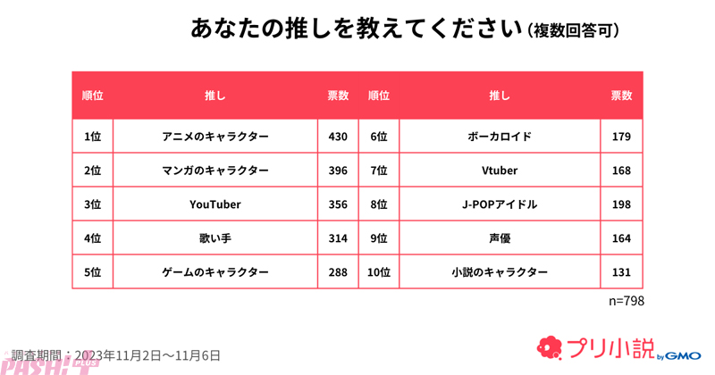 GMOインターネットグループのGMOメディアは、チャット型小説サービス「プリ小説 byGMO」を利用している、中学生・高校生の女子806名を対象に「推し活」に関するアンケートを実施しました。