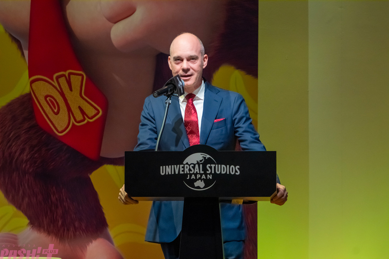 「私たちは、ゲストの想像を大きく超え、ありえないと思っていたような体験を提供し、心から興奮するような感動を送り続けています。『スーパー・ニンテンドー・ワールド』では、マリオのようにジャンプしたり、はてなブロックをパンチしたり、コインを集めたり、レインボーロードで競い合うことができます。そして新たに『ドンキーコング・カントリー』では、より高いインタラクティブ性をもった“アソビ体験”を大幅に拡張します。『スーパー・ニンテンドー・ワールド』に、任天堂のゲームの世界をテーマにしたライドとして世界初のライド・アトラクションを革新的な技術で導入したように、新エリアにもイノベーションあふれるライド体験を実現、ファミリーでもお楽しみいただけるスリリングなコースターとして登場します。ユニバーサル・クリエイティブが、従来のライド・アトラクションのアイディアに縛られない新規性と革新性に富んだコースターデザインを開発、壊れたトラックをジャンプするような予測不能な体験を提供、視覚的にも本能的にも刺激あふれる体験を提供します。ここからしか生まれない斬新なコースターですので、ファンの皆さんに体験してもらう日が待ち遠しいです!」と語りました。