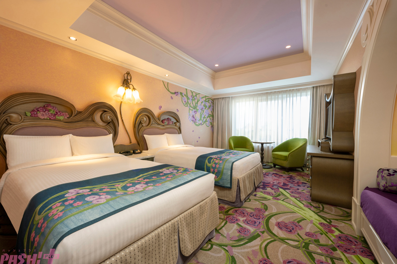 客室数は419室で、客室内は壁紙や照明などいたるところに、「ラプンツェル」や「バンビ」などのディズニー映画のキャラクターや草花をモチーフにした装飾が施されています。