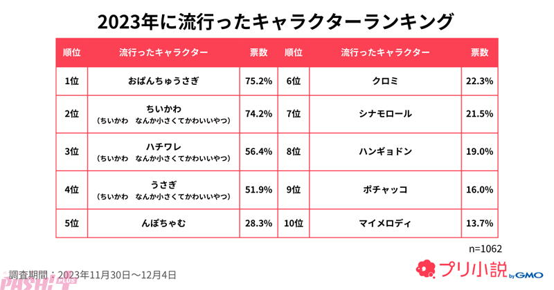 「おぱんちゅうさぎ」が「ちいかわ」を抑えて1位に! “女子中高生の2023年トレンド調査”アンケート結果が発表