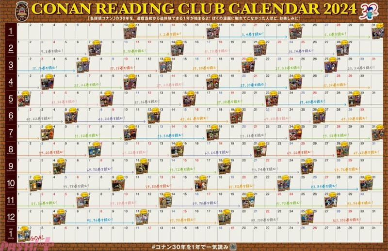 「コナン・リーディングクラブ」は、現在104巻まで発売しているコミックスを、途中で離脱してしまった方、映画から入ってまだコミックスを読んでいない方、104巻は重い腰が上がらない……という方も楽しんで読んでいただけるように、1年を通じて毎週2巻ずつを目安に読み進み、読むごとに「読了証明書」やちょっとしたプレゼントがもらえる企画です。