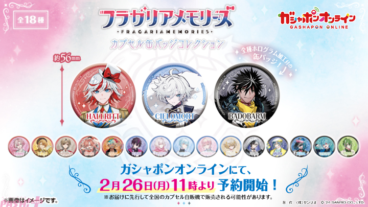 そのほか、6月より全国カプセル自販機&ガシャポンオンラインにてカプセル缶バッジコレクションの発売が決定しました。それに先立ち、2月26日(月)11時よりガシャポンオンラインにて予約が開始されます。