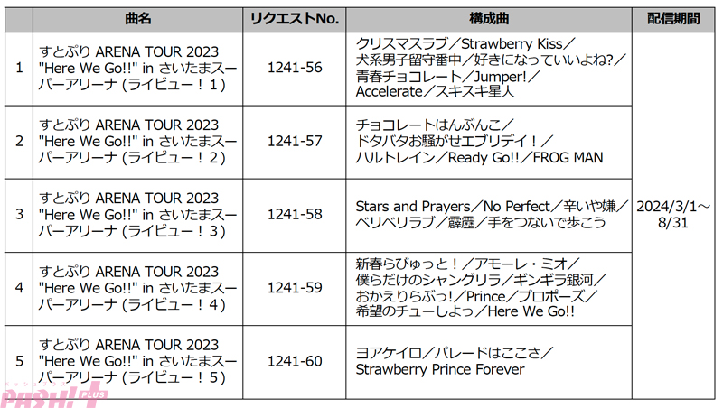第一興商は、通信カラオケ「LIVE DAM AiR」および「LIVE DAM Ai」の限定コンテンツ「ライビュー!」において、すとぷりが2023年4月にさいたまスーパーアリーナで開催したアリーナツアー『すとぷり ARENA TOUR 2023 “Here We Go!!”』のライブ映像を、2024年3月1日より期間限定で独占配信します。