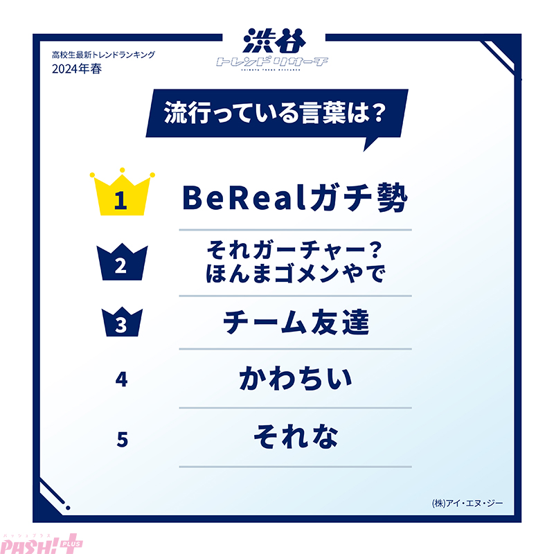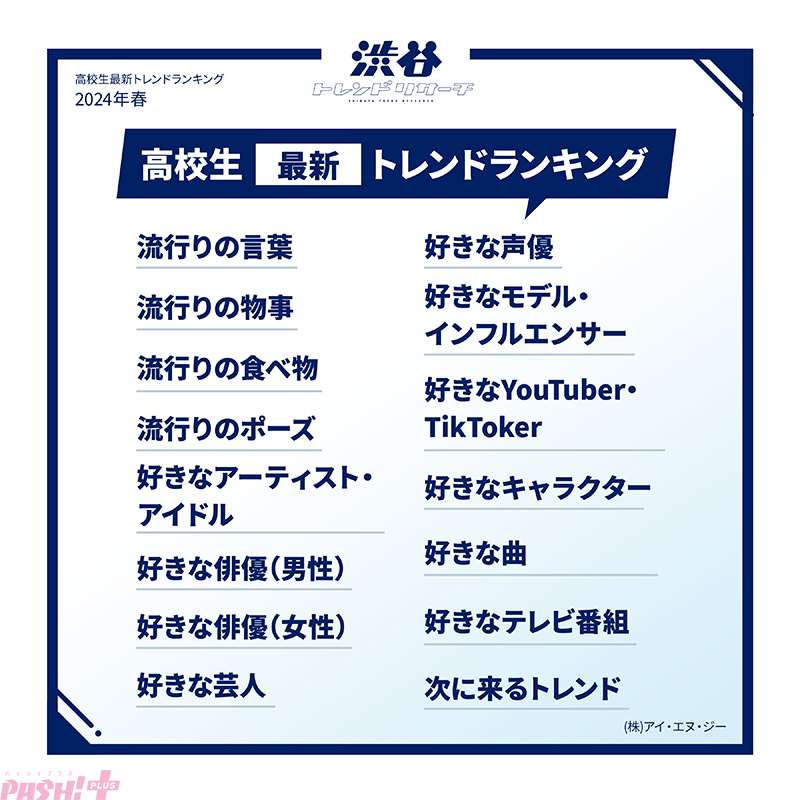 ティーンに特化したマーケティング&プロモーション支援を提供するアイ・エヌ・ジーは、流行に敏感な高校生にアンケート調査を実施。【2024年春!高校生最新トレンドランキング】として、Z世代の流行語や話題の食べ物・ポーズなど全15項目を発表しました。