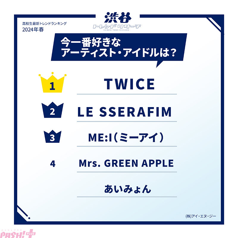 2位「LE SSERAFIM」。3位には「ME:I(ミーアイ)」がランクイン。オーディション番組出身のアイドルグループが多数ランクインしており、オーディションを通して成長を見守っているようです。