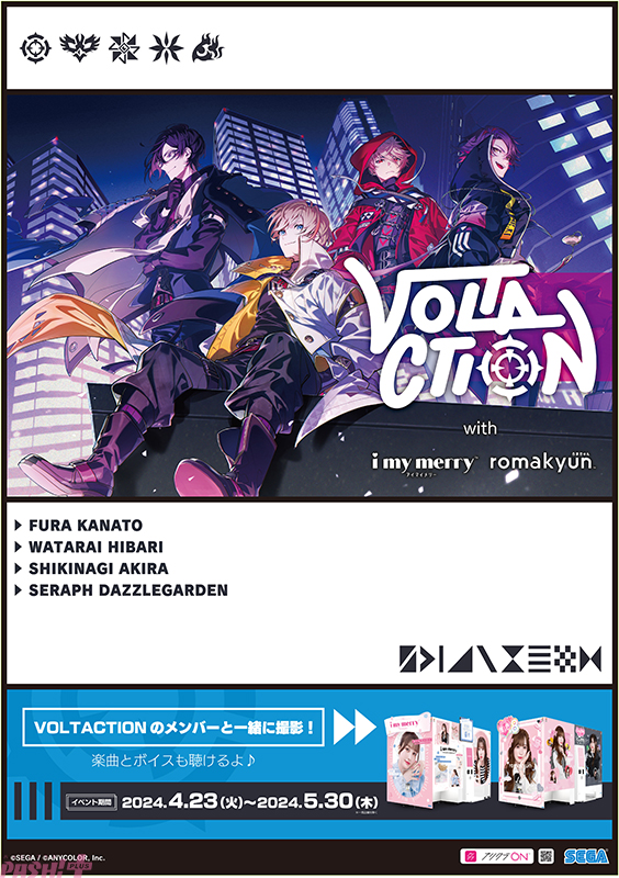 セガ フェイブは、好評稼働中のプリクラ機『i my merry(アイマイメリー)』『romakyun(ろまきゅん)』の2機種にて、にじさんじのバーチャルライバー ユニット『VOLTACTION(ヴォルタクション)』と2024年4月23日(火)よりコラボイベントを開催します。
