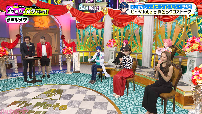 これまでのバーチャルスタジオから一新し、出演者とVTuberは雛壇に着席するまさにリアルとメタバースが融合した交差点のようなスタジオで熱いトークを展開します。