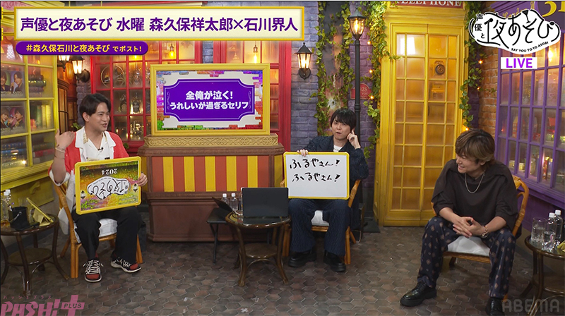 ABEMA(アベマ)は、“アニメLIVEチャンネル”において、5月8日(水)の夜10時から夜11時30分にわたり『声優と夜あそび 水【森久保祥太郎×石川界人】#4』を放送しました。