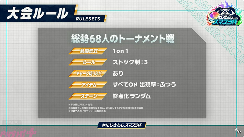 6月2日10:00より開催となる「にじさんじスマブラ杯」は、任天堂より発売中のNintendo Switch用ソフト『大乱闘スマッシュブラザーズ SPECIAL』による大会。参加者は全68名で、予選は4ブロック・各17名のトーナメントで戦います。