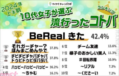 「BeReal.」は10代女子の定番SNSに? 『Bling-Bang-Bang-Born』や「猫ミーム」もランクインの「2024年上半期 10代女子が選ぶトレンドランキング」が発表